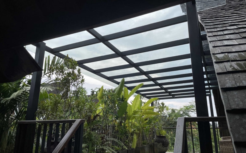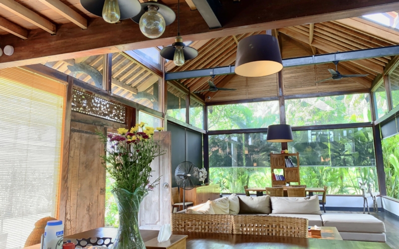 This unique home is a true reflection of heritage, sustainability, and thoughtful design. Constructed primarily from recycled wood sourced from across the Indonesian archipelago, the house carries a deep personal significance. It is named in honor of the homeowner’s mother, who, at 97 years old, remains an inspiring figure. The architectural style of the main building is influenced by the traditional Minangkabau design from Sumatra, paying homage to her cultural roots with its distinctive curved rooflines and aesthetic character.